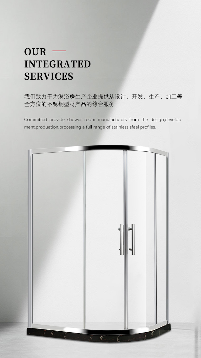 公司主要不銹鋼建筑裝飾產品有:淋浴房,廚房門,衛生間門,陽臺門,推拉門,平開門,固定門,不銹鋼屏風,不銹鋼欄桿、扶手,不銹鋼立柱,不銹鋼裝飾板,不銹鋼裝飾線槽,不銹鋼金屬制品等等。